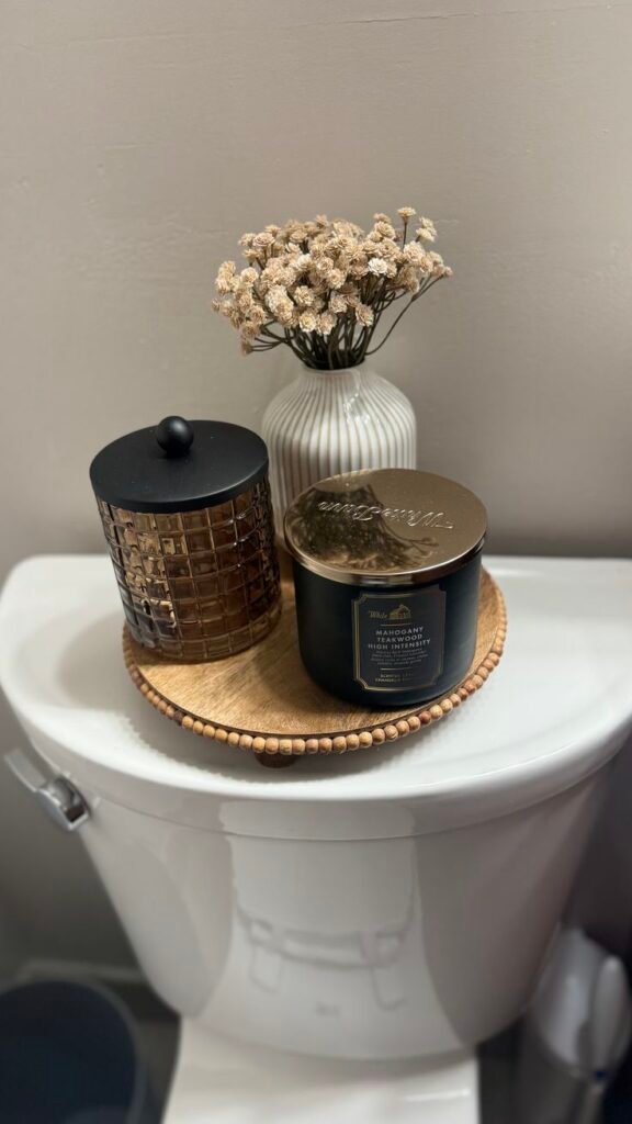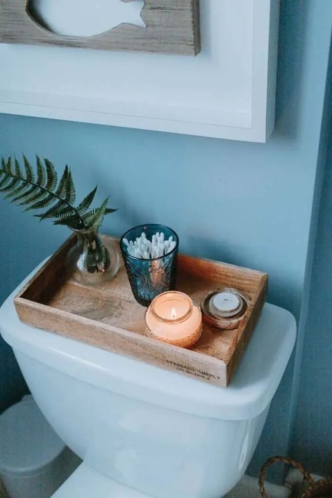 Decorating the toilet tank doesn’t just make things look good—it can also add storage or organization. Think trays, jars, or small baskets. I personally love when design multitasks, because nothing feels better than stylish functionality.