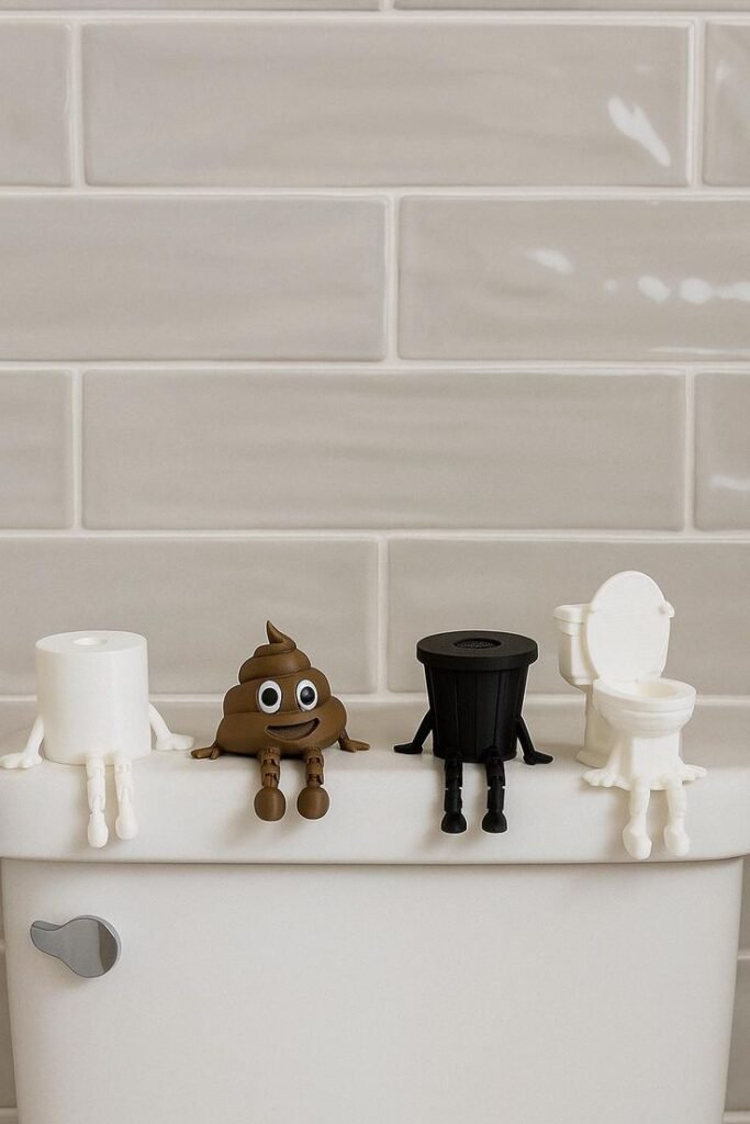 Who says your toilet can’t have personality? Tiny, whimsical ceramic or resin figurines can make a big impact.