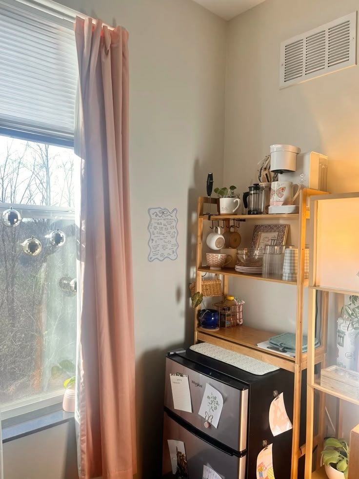 Dorm kitchens are tricky because they combine limited space with high expectations. You want to cook, store food, keep things clean, and maybe even make it look cute, all in the footprint of a shoebox. According to my experience, the key is creating a system where every item has a home and every inch of space is intentional. Once I started thinking about my kitchen like that, the stress melted away, and cooking actually became enjoyable again.
