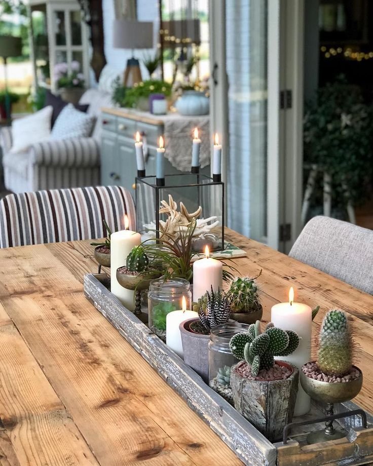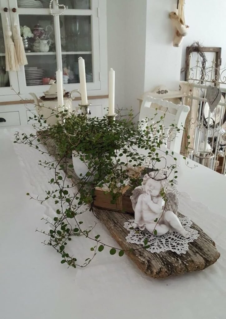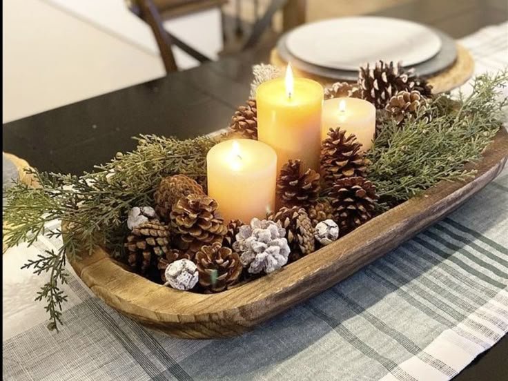 I like filling a dough bowl with three to five neutral candles in varying heights. It feels warm, simple, and timeless.