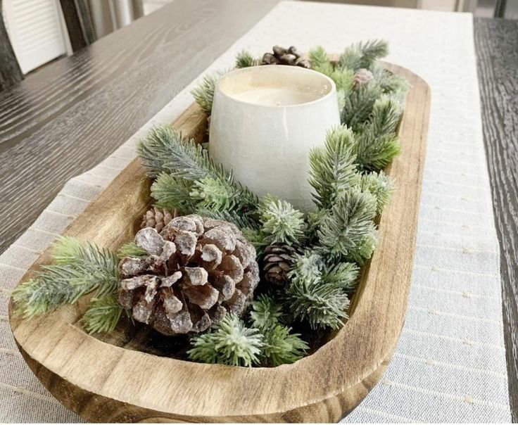 8. Winter Dough Bowl Decor with Pinecones and Greens