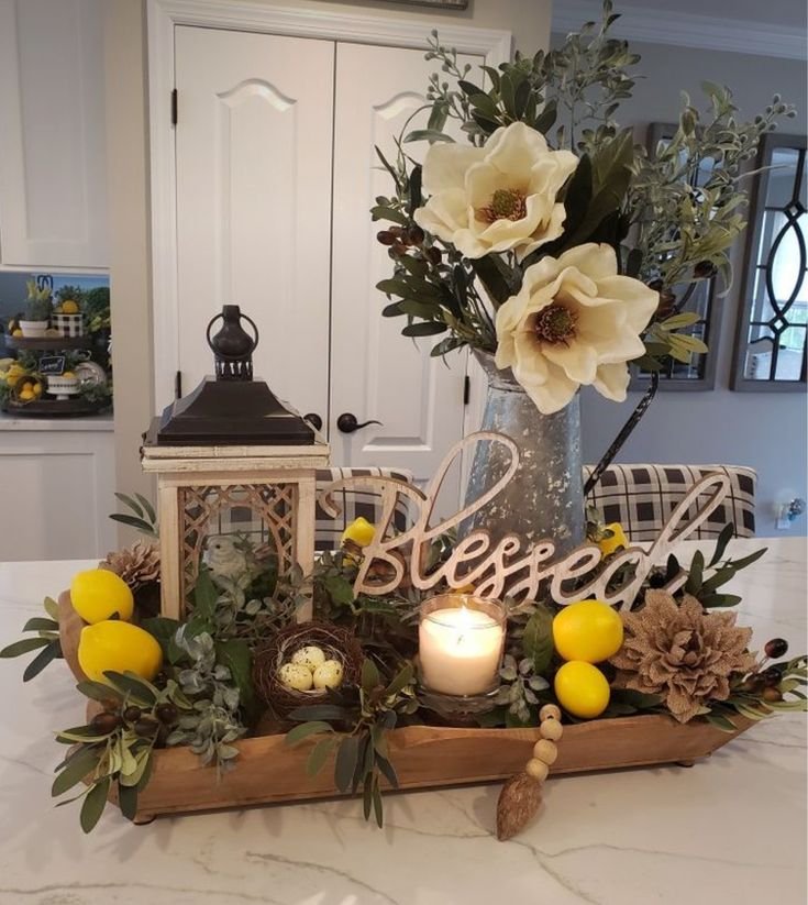 This dough bowl decor idea grounds the table without blocking conversation. That matters more than people think.