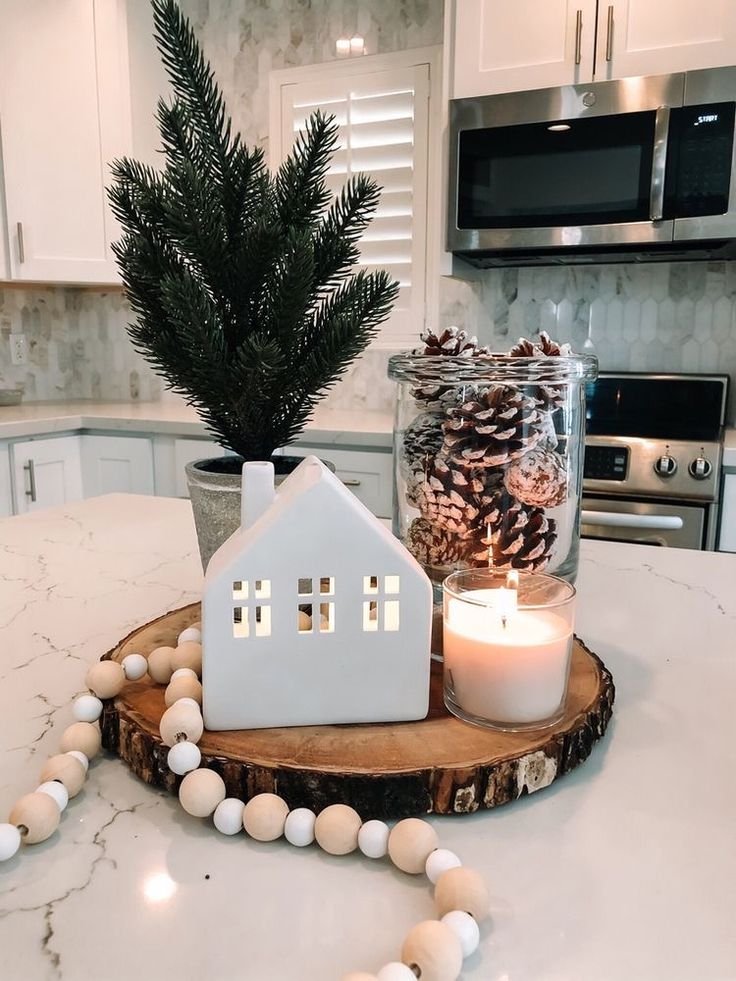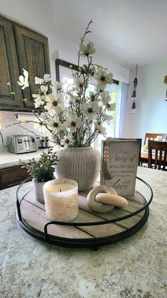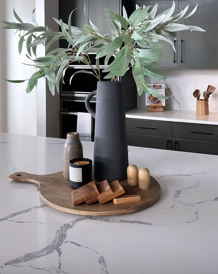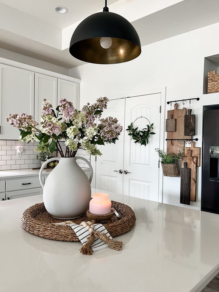 I prefer centerpieces that evolve. Seasonal decor keeps the island fresh without a full redesign.