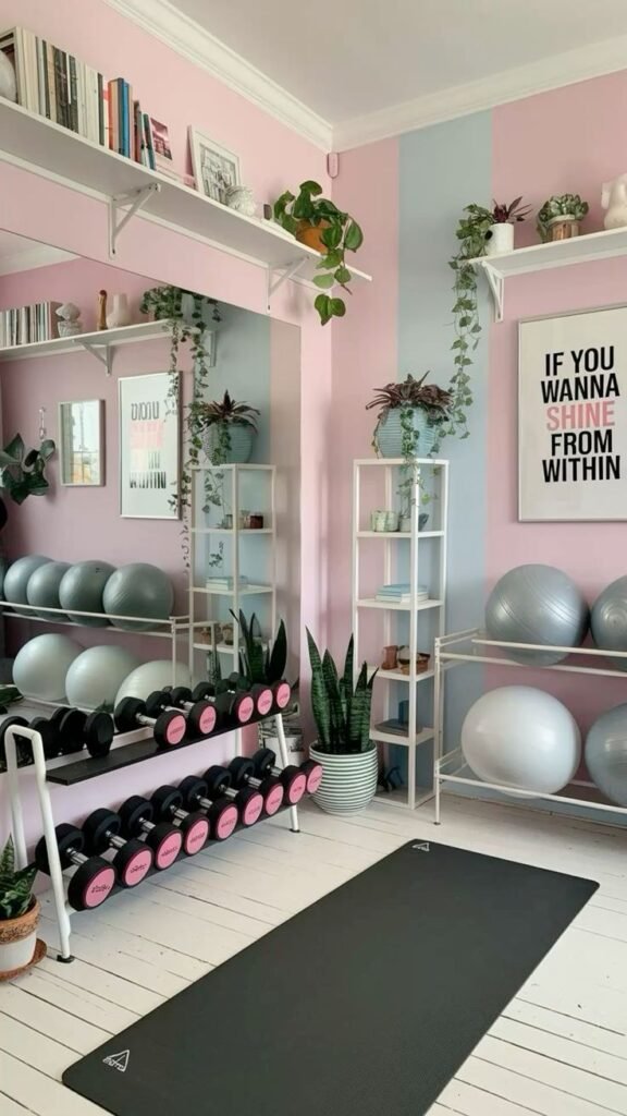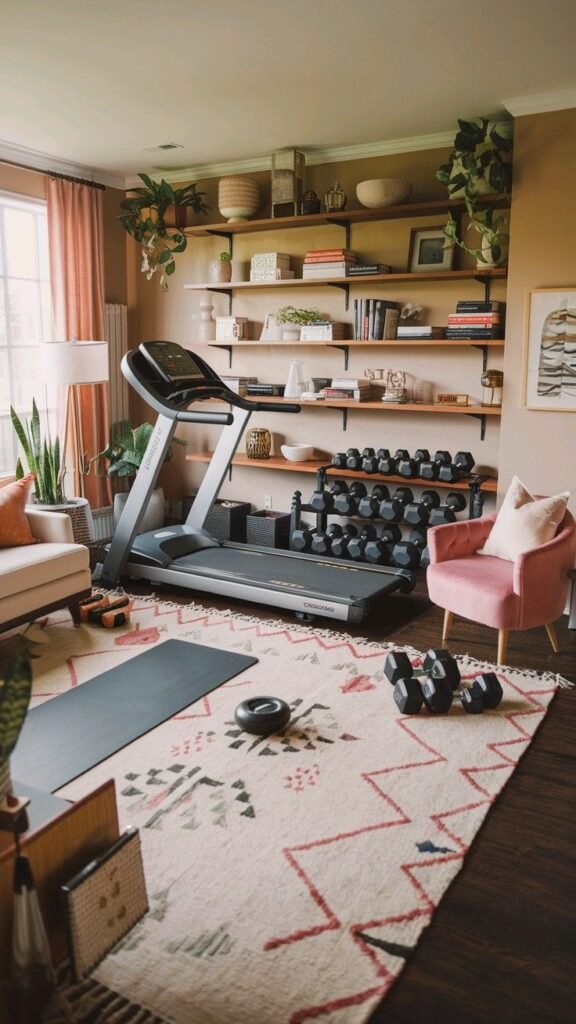Now let’s get into the real stuff. These home gym ideas that are practical focus on ease, flexibility, and consistency.