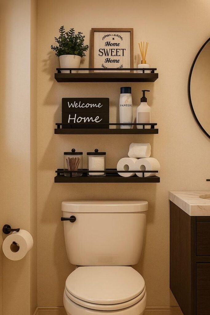 Now we’re getting to the good stuff. These bathroom shelf decor ideas come from real-life use, not just pretty pictures.