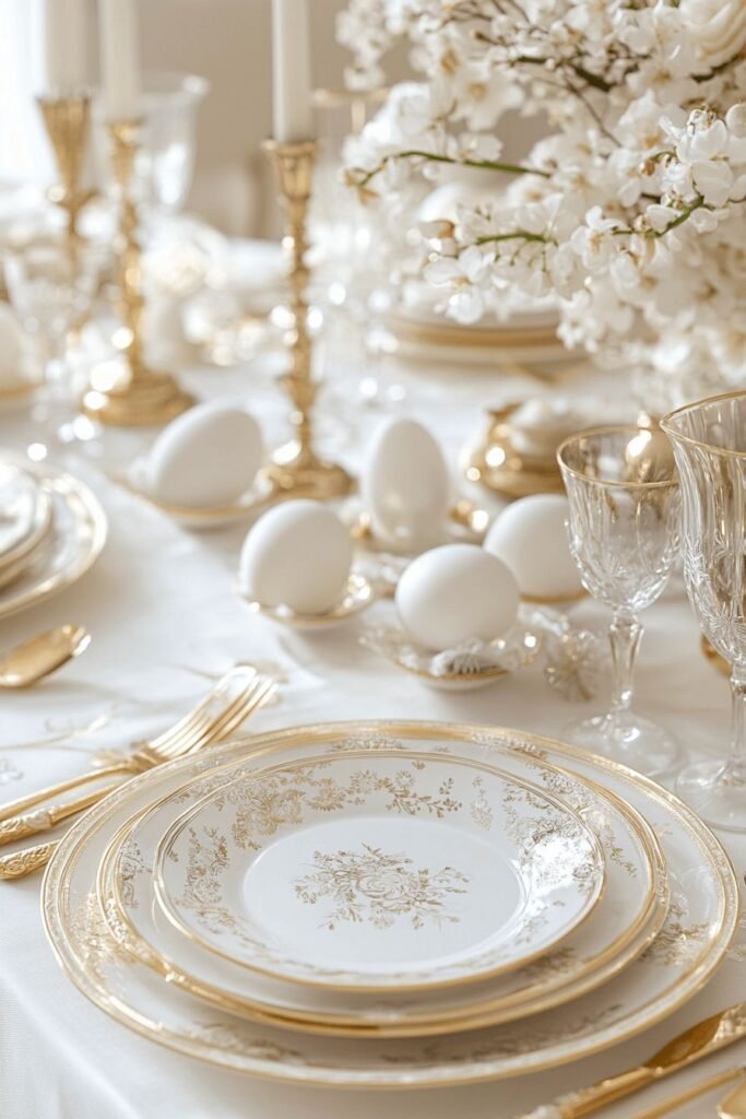 3. Elegant Gold and White Easter Table Setting