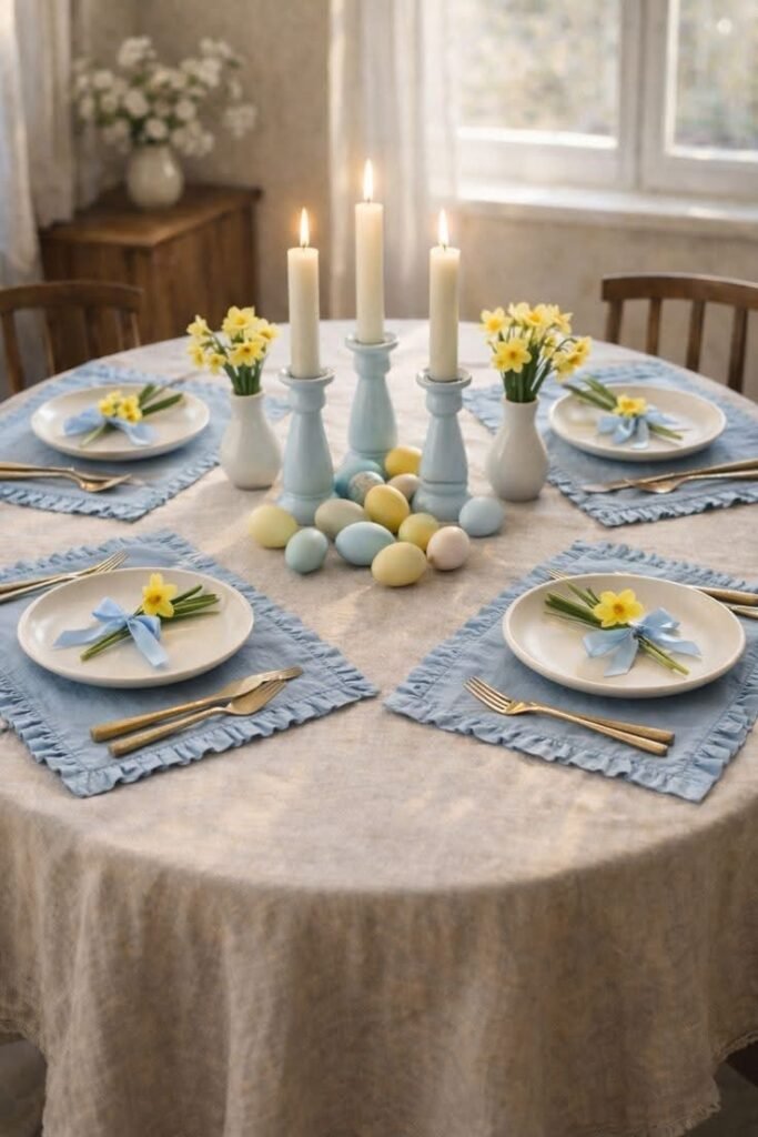 Candles elevate everything. Soft lighting instantly upgrades any Easter table setting. Skip harsh overhead lights. Use tapers or votives.