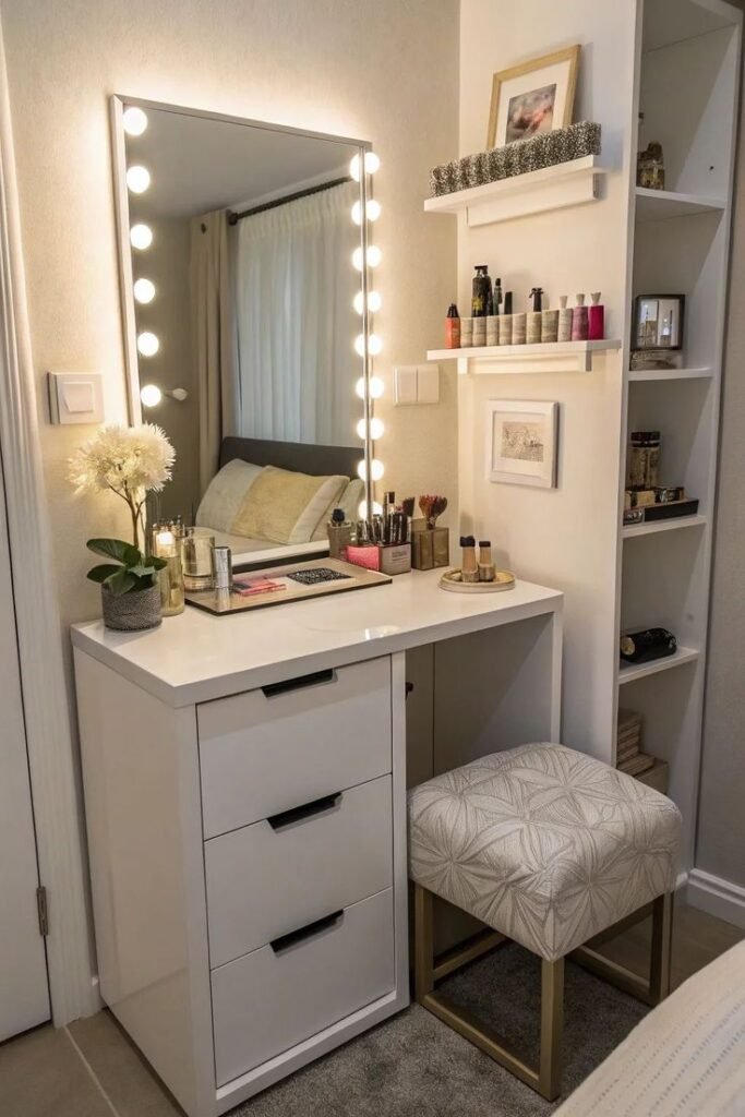 7. Bedroom Corner Makeup Vanity That Feels Seamless