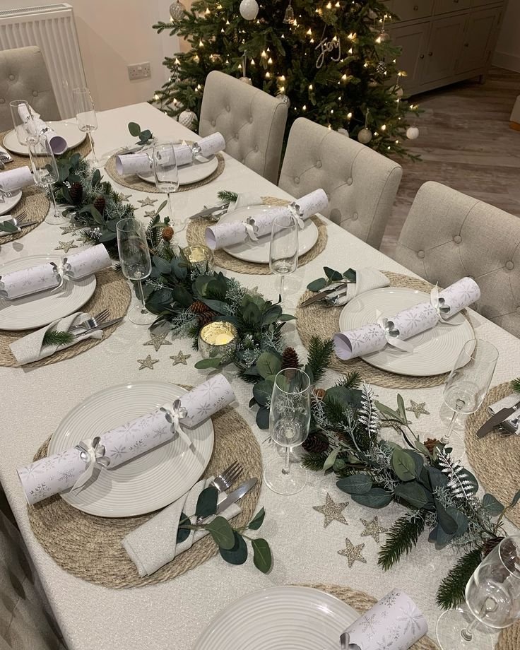 White doesn’t have to feel cold. I like winter whites layered with texture. Linen napkins, ceramic plates, and soft runners keep the look inviting.