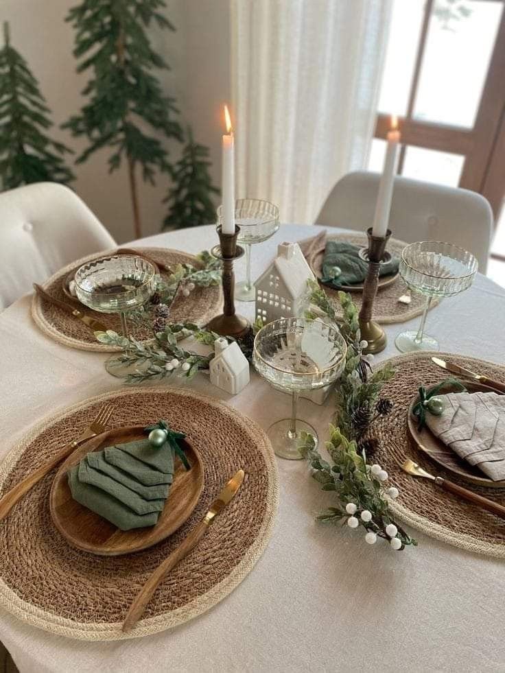 I recommend keeping place settings simple in winter. Clean plates, minimal cutlery, and one warm detail work best. That detail could be: