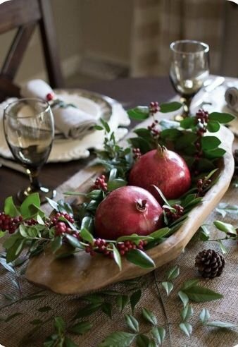 Yes, fruit belongs on the table. I like to use pears, pomegranates, or oranges as decor. According to my experience, seasonal fruit adds color and texture naturally.