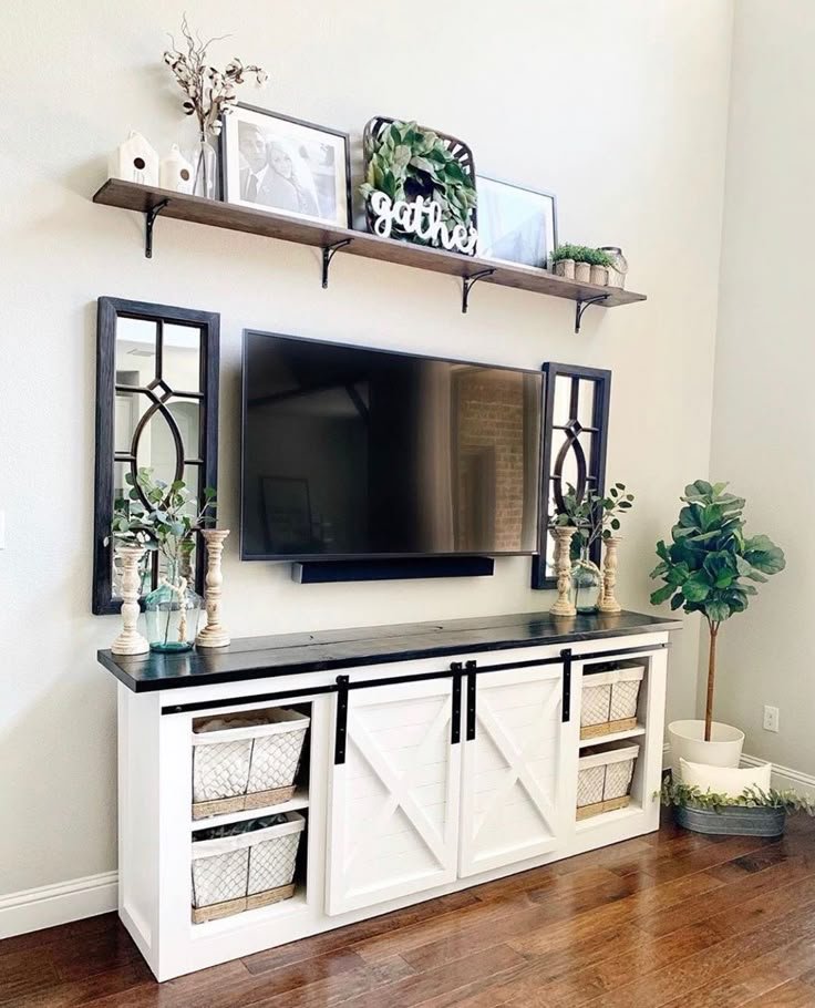 I always recommend starting with your existing furniture. Your TV stand decor should support the room’s style, not compete with it.