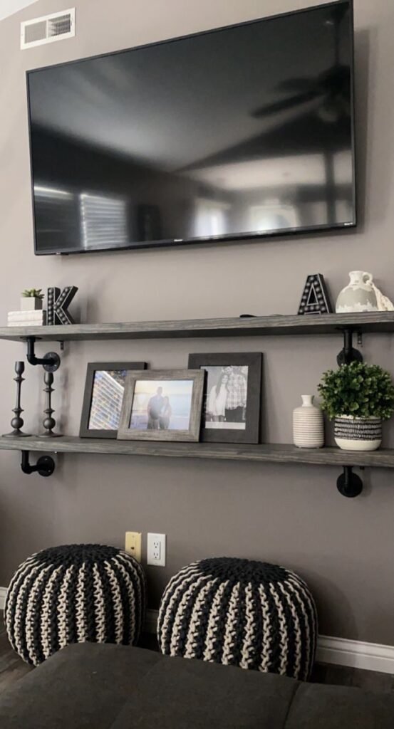 12. Floating Shelves Above the TV Stand