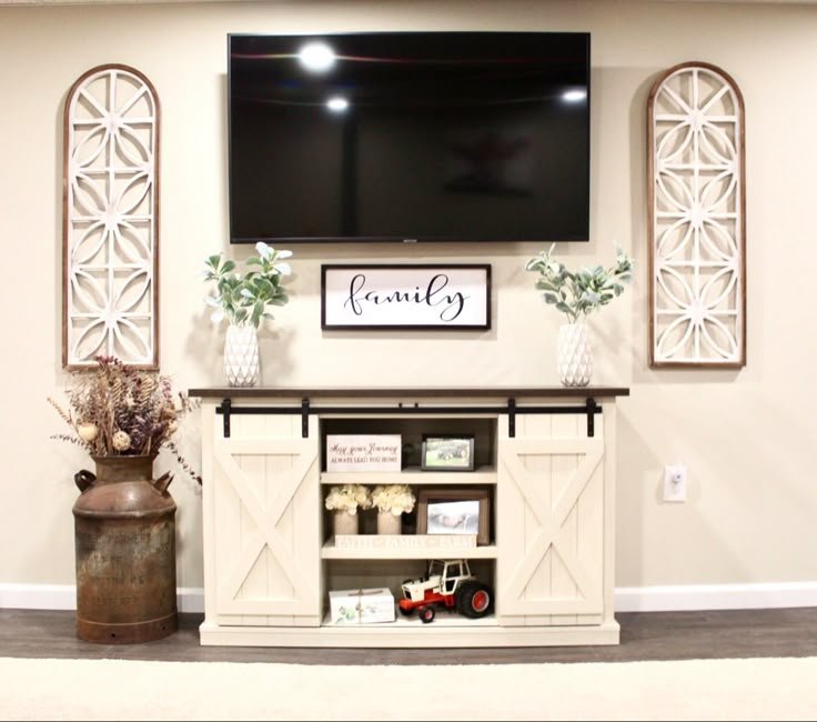 Hidden storage makes beautiful TV stand decor possible, especially in family homes.