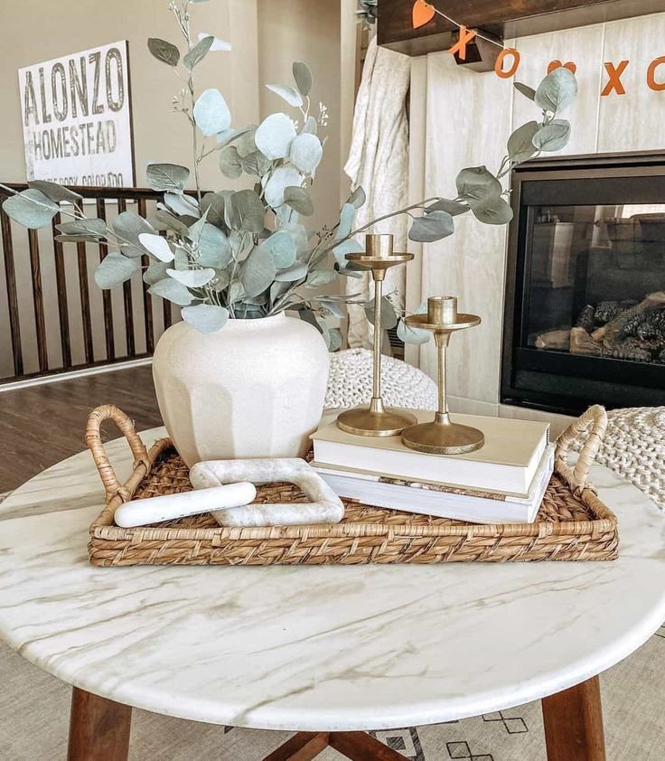 1. Coffee Table Centerpiece Round Tray Decor