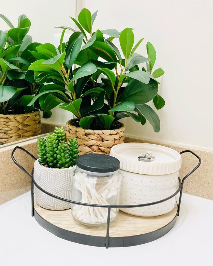 13. Bathroom Counter Corner Round Tray Decor