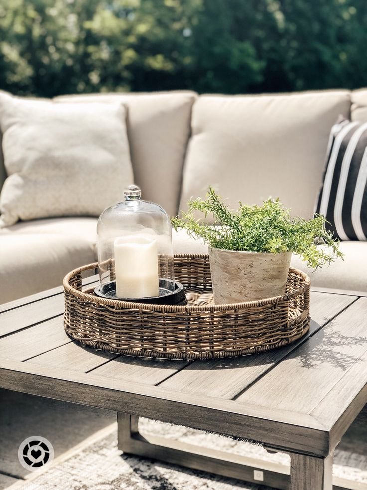 14. Outdoor Table Round Tray Decor Ideas