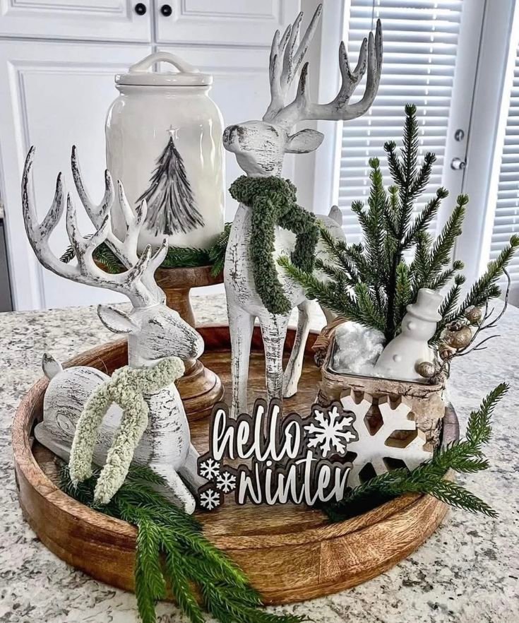 10. Wooden Tray Winter Centerpieces